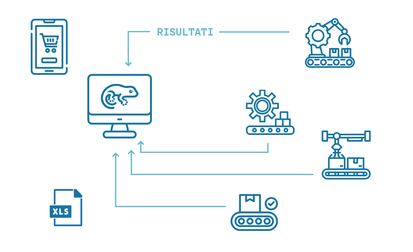 Implementazione costante per adattarsi ai diversi linguaggi delle macchine da interconnettere. Evoluzione del software per soddisfare sempre meglio le esigenze delle imprese.